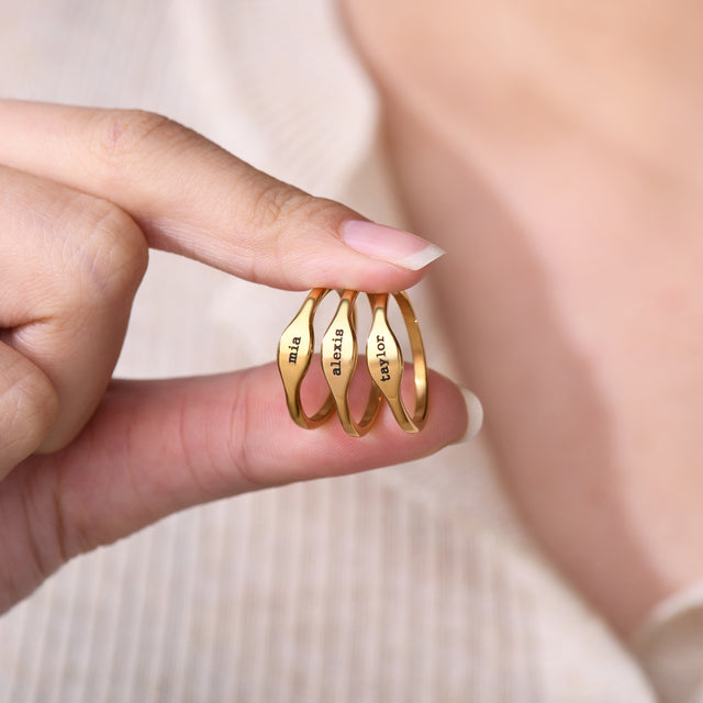 Our Custom Delicate Thin Name Ring is the perfect way to add a personalized touch to your jewelry collection. Expertly crafted with high-quality materials, this ring features a delicate and slender design that's perfect for everyday wear. The customization element allows you to choose the name of your choice to make it a truly unique and special piece. Ideal as a gift or for treating yourself, this ring is sure to become a treasured addition to your jewelry box.